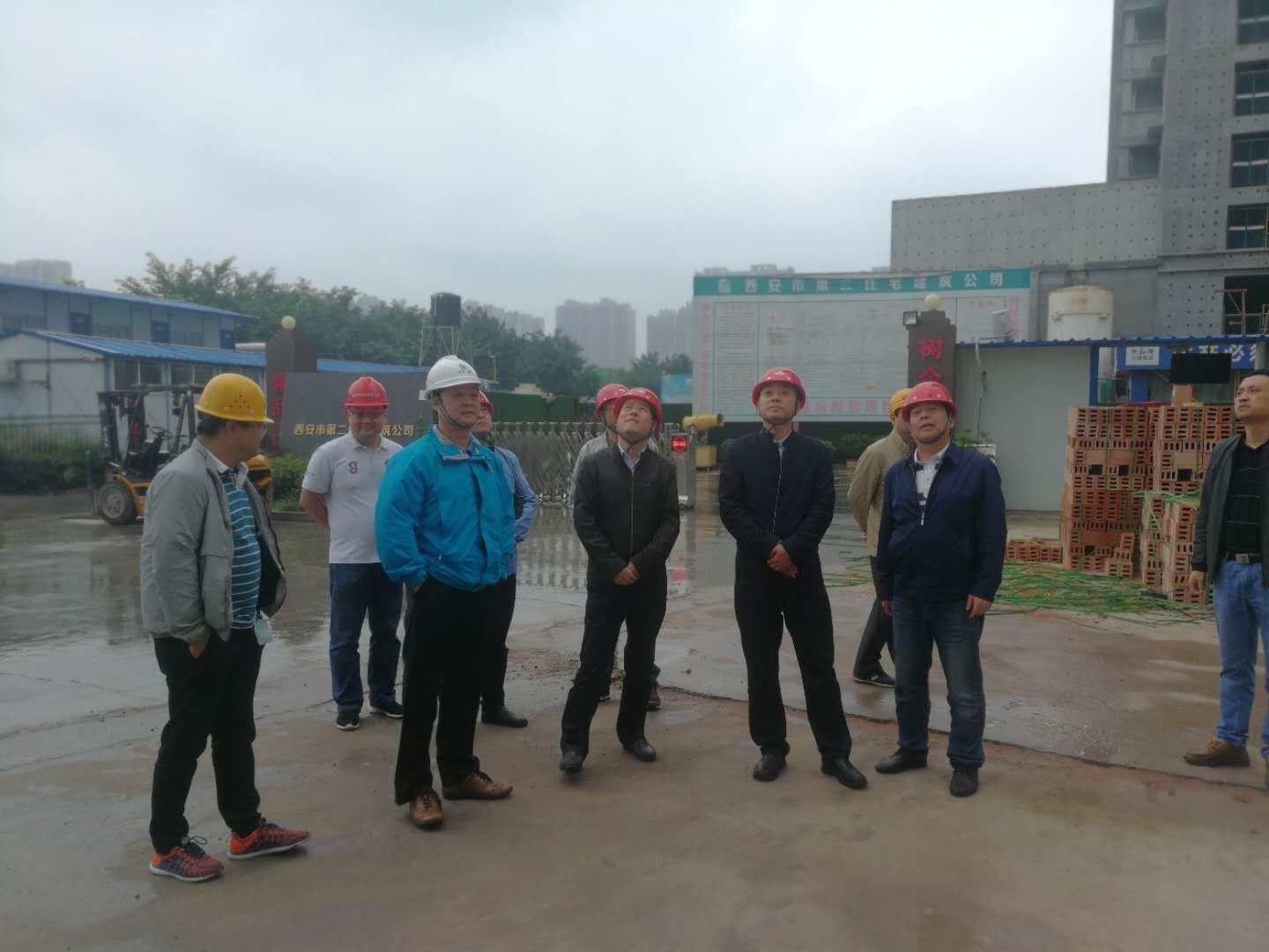 首先由公司丈八項目負責人向檢查組匯報工程建設情況,目前2#、3#、5#、8#樓已經全面開展裝飾裝修階段施工,6#樓已封頂室內外工作同步開展施工,4#樓和7#樓計劃十一月份完成主體階段施工同步開展二次結構、粉刷、室內外管道以及裝飾裝修施工,力爭按期完成建設任務;項目整體建設情況,公司一直秉承建設優質工程和安全文明的標準施工,項目在安全文明施工、治污減霾和環境保護、政府形象宣傳等方面嚴格按照市政府和市局關于保障房建設要求實施和落實。項目建設到目前為止,在市局和甲方、監理的指導和支持下安全平穩的穩步推進,施工中未發生一起質量安全責任事故。